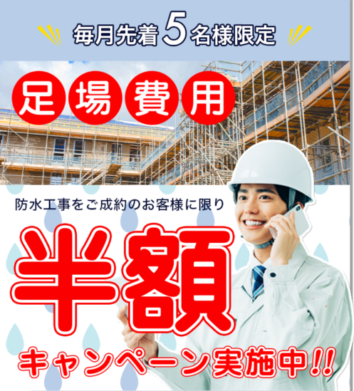 防水工事屋さんPROでは、足場費用半額キャンペーンを実施しています。